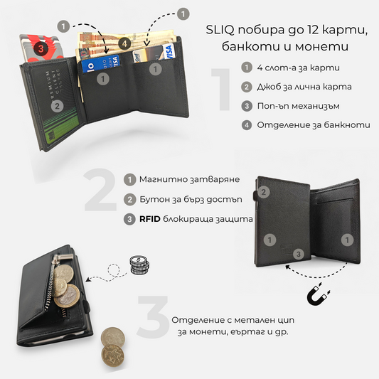 SLIQ pro | Смарт портфейл с RFID защита