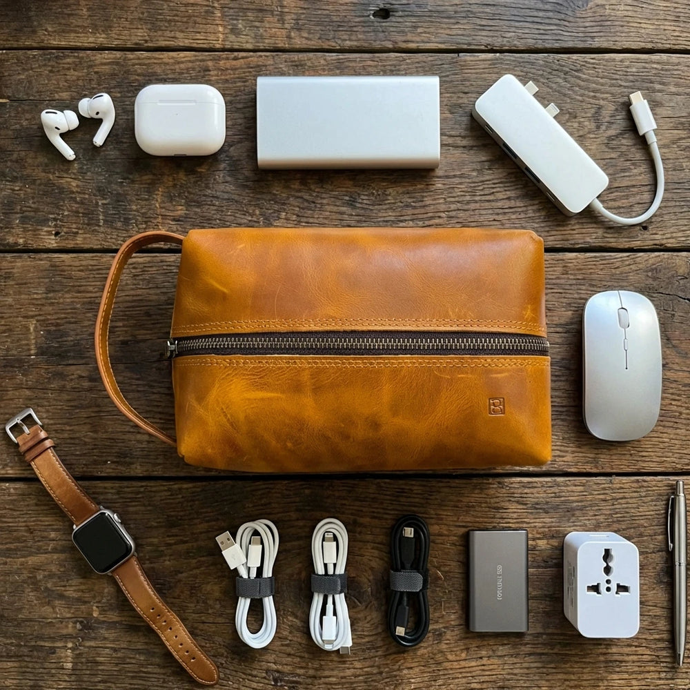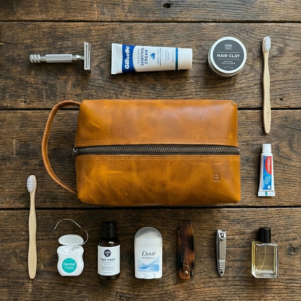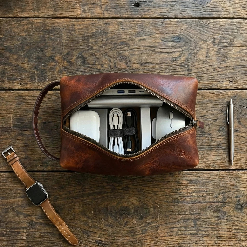 Стилен несесер от естествена кожа, който прави впечатление още преди да го отвориш. Стои чисто и елегантно, а формата държи всичко подредено – четка за зъби, козметика, малки аксесоари. Хвърляш го в ръчния багаж и тръгваш спокойно – носиш най-важното със стил и класа, без излишен шум.